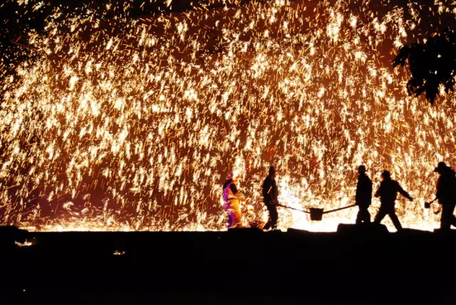 至今已有500余年历史,是用熔化的铁水泼洒到古城墙上,迸溅形成万朵火花,因犹如枝繁叶茂的树冠而称之为“树花”,后来,暖泉镇每逢元宵佳节期间“打树花”的习俗一直延续至今。